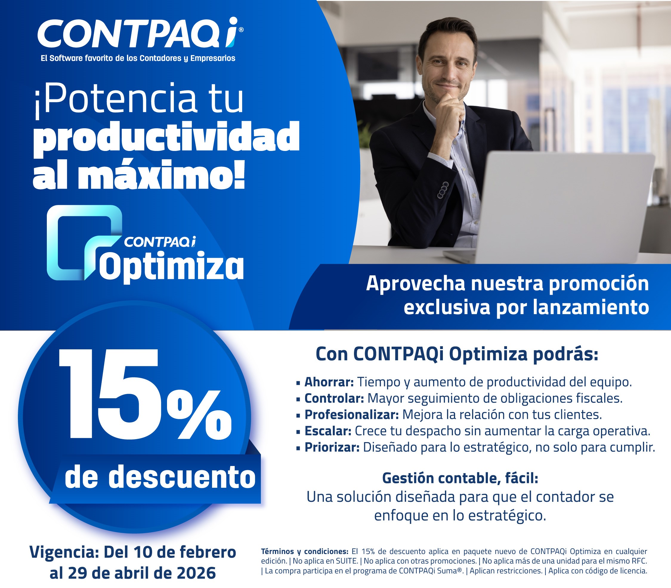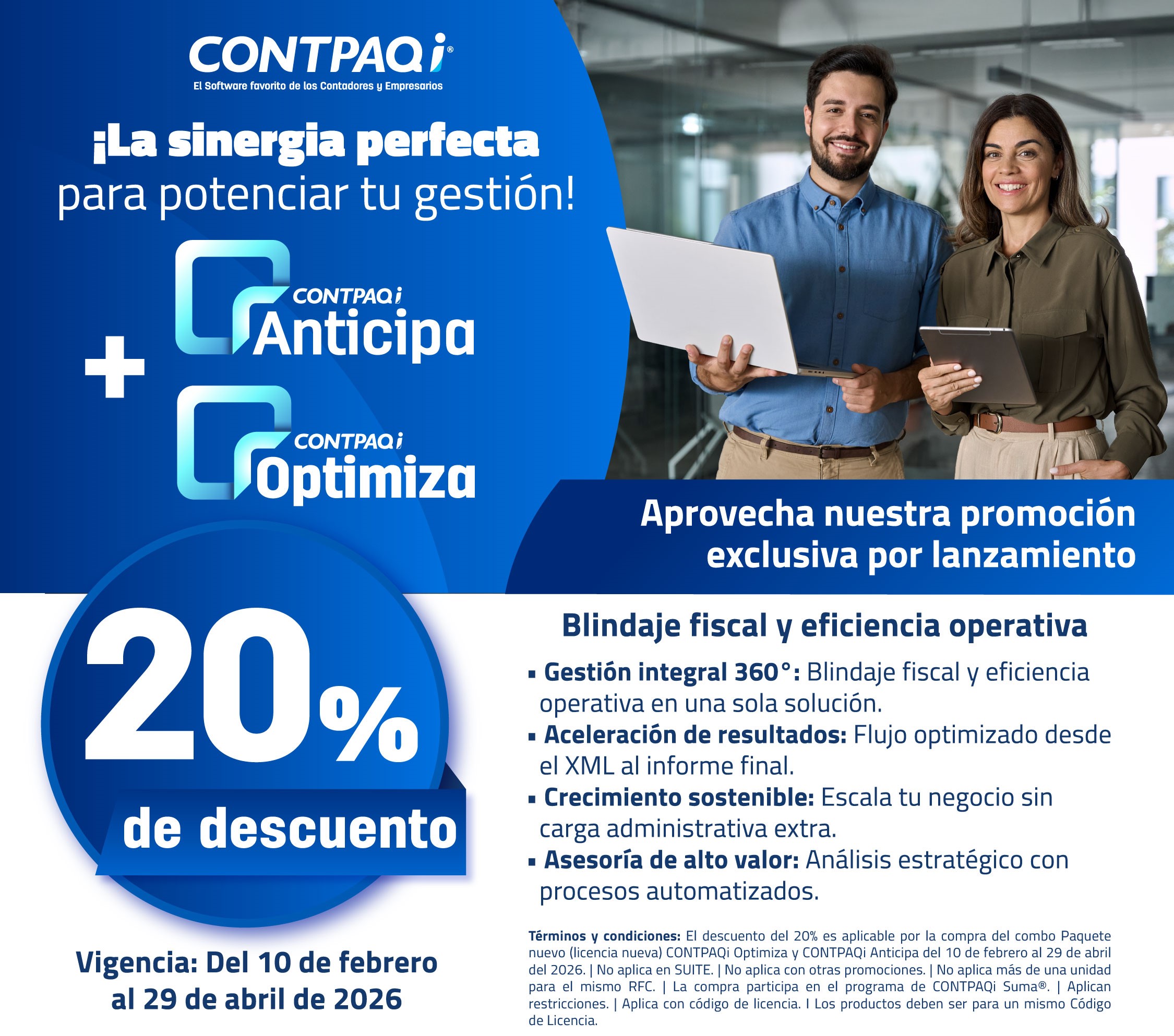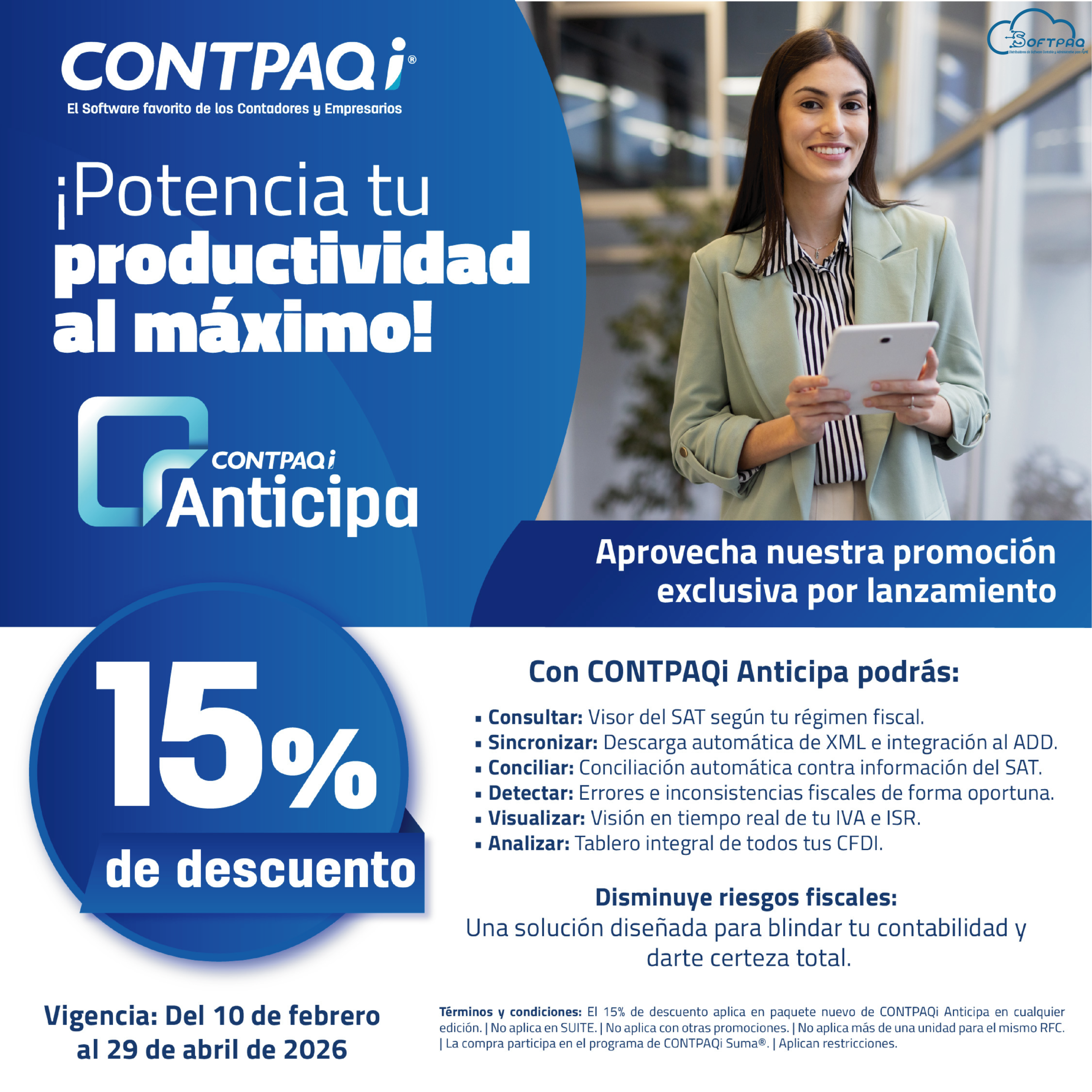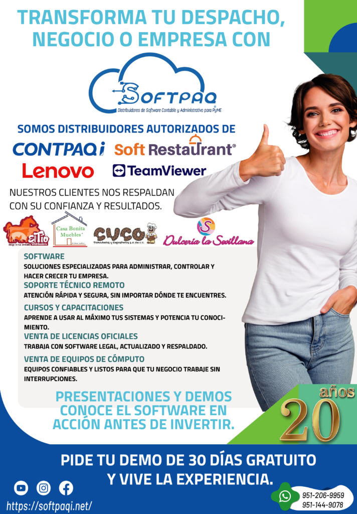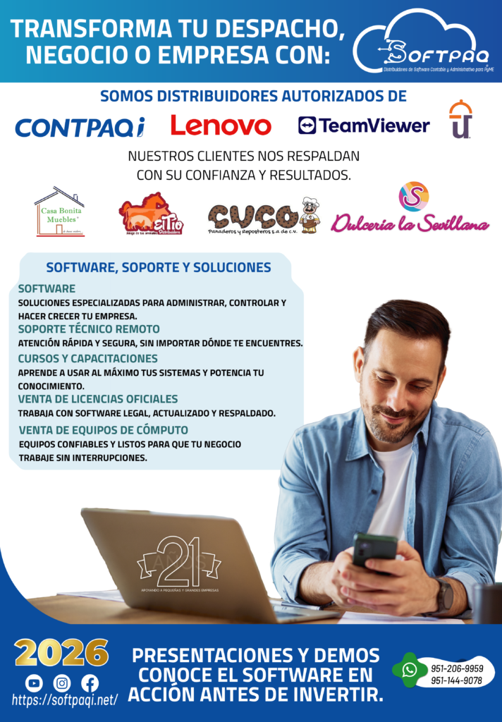 Especialistas en software para la contabilidad y gestión de micro, pequeñas y medianas empresas, CONTPAQi® cuenta con más de 36 años en el mercado. Es un proveedor certificado por el SAT. 950 mil usuarios activos y más de 6,000 distribuidores en todo México. Con actualizaciones tanto fiscales como del software en sí, estamos al día ante el panorama que se vive en el país