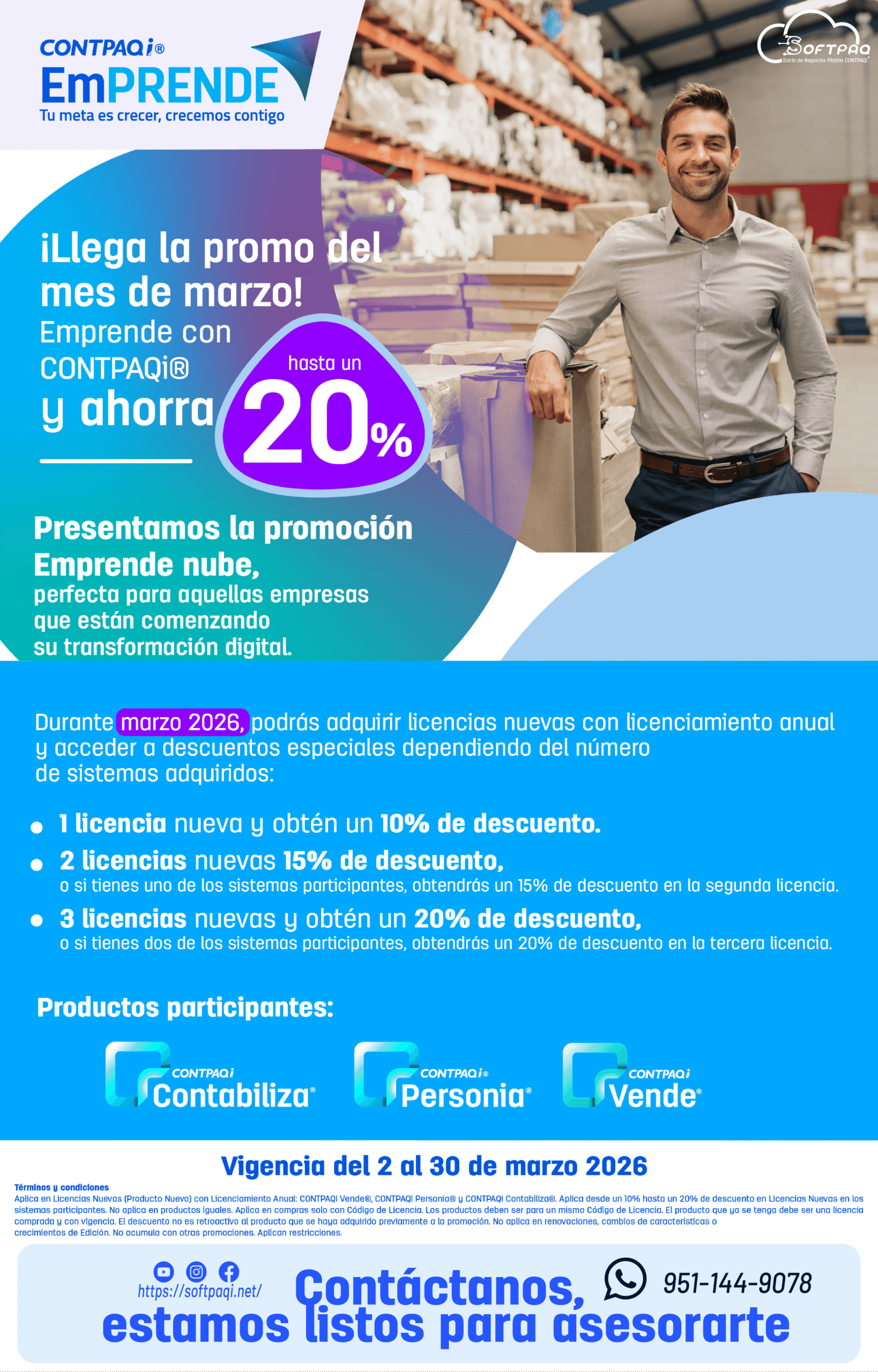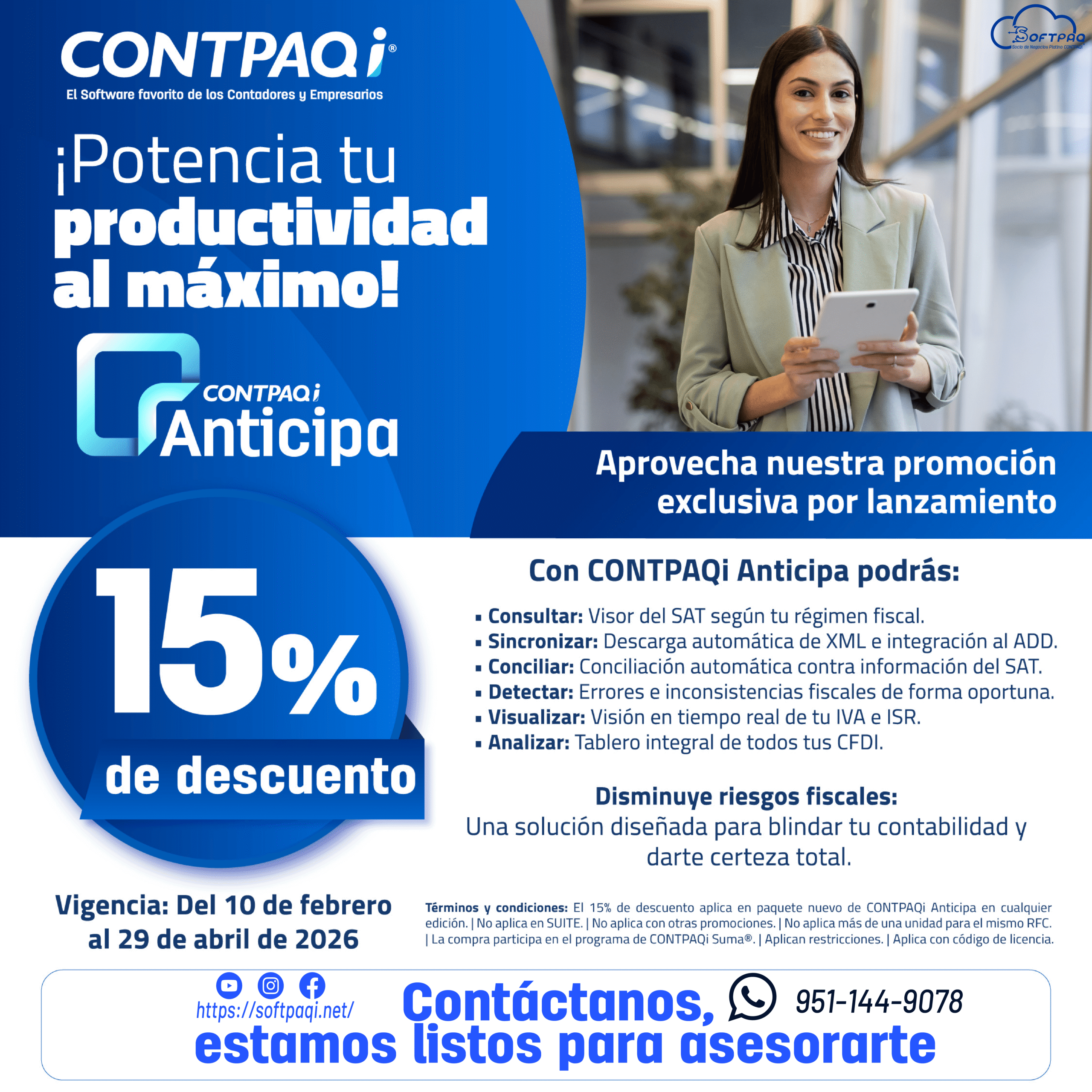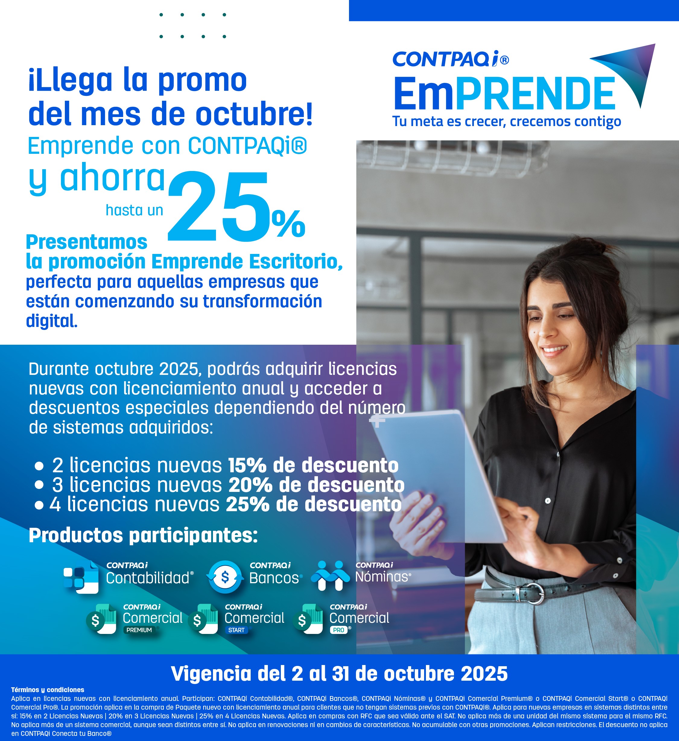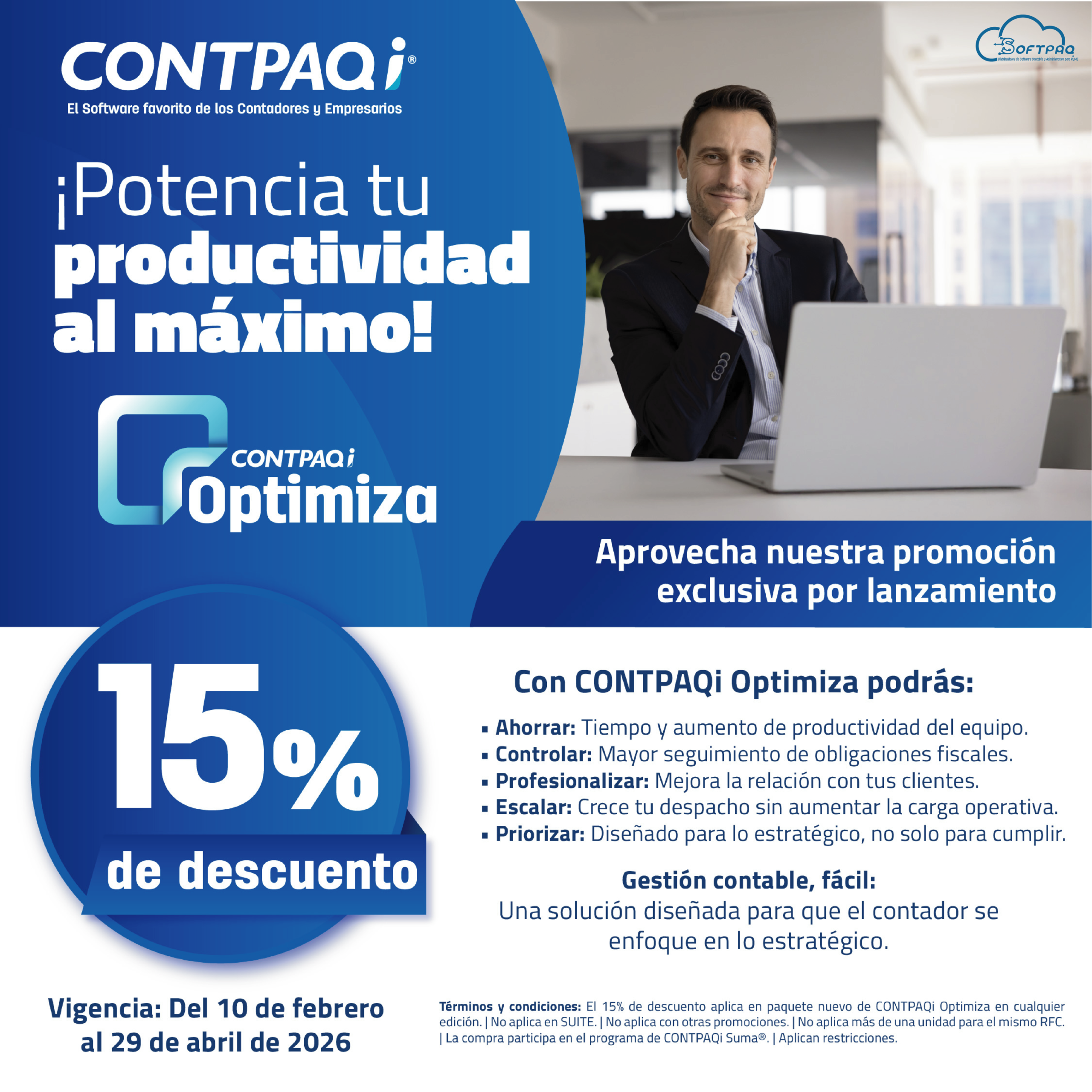 Especialistas en software para la contabilidad y gestión de micro, pequeñas y medianas empresas, CONTPAQi® cuenta con más de 36 años en el mercado. Es un proveedor certificado por el SAT. 950 mil usuarios activos y más de 6,000 distribuidores en todo México. Con actualizaciones tanto fiscales como del software en sí, estamos al día ante el panorama que se vive en el país